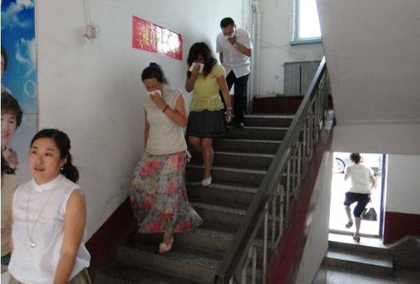 7月18日下午3时许,在梅河口市农机局办公楼,随着一声火警警报的长鸣,从楼道里跑出来的人们手捂口鼻,俯身有序的撤离了大楼,这是该部门强化安全应急预案工作而开展的一次消防演练。