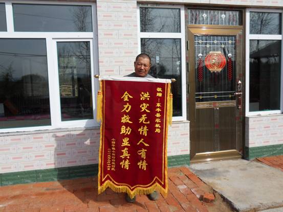 10月8日,农机局党委书记、局长高光耀再一次来到了张春友家中进行看望。张春友深情的说:“没有想到灾害过后我的土坯房变成了砖瓦房,也没有想到能这么快就住了进来,要是以我个人的能力,我一辈子也住不上新瓦房,感谢党和政府的关怀和帮助,现在条件好了,我也敢想了,我想找个老伴好好过日子。”。为了表达感激之情,张春友特意找人做了一面锦旗送给了农机局,锦旗上写着“洪灾无情人有情,全力救助显真情。”