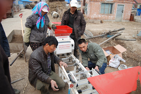 舒兰市农机推广站以党的群众路线教育实践活动为契机,吸纳群众建议,改进工作方法,多措并举开展玉米保护性耕作技术宣传、培训和指导工作。一是组织农机专家送技术到乡镇、村屯,面对面讲解耕作模式,推进掌握新技术;二是到示范户家中逐户指导机械操作方法,手把手教授操作要领,推进掌握新技能;三是搭建全市项目示范户间沟通桥梁,相互探讨春耕生产情况,推进掌握新信息;四是针对每户种植需要逐台调试免耕播种机械,一对一调整种肥精量,推进合理新耕作。
