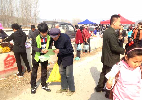 活动期间,为过往群众分发印制的《中华人民共和国农业机械促进法》、《2014年农机购置补贴政策宣传单》等宣传资料并耐心解答群众询问。