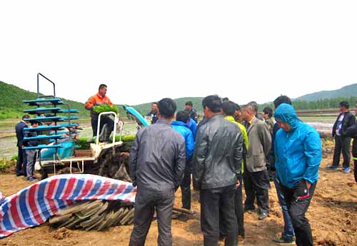 会议结束后,全体与会人员到玉龙合作社的田地里现场观摩了水稻机械化作业。现场会上组织了多台插秧机分别进行了作业演示,玉龙合作社社长韩女士介绍水稻全程机械化作业大大提高了工作效率,缩短了作业时间,高度赞扬了水稻全程机械化作业给合作社带来的益处。韩女士是水稻机械化推广工作的一张明信片,她鼓励大家积极参加到水稻全程机械化建设当中。