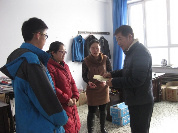 12月30日,敦化市农机局两名副局长分别带队,冒着小雪,到敦化市实验中学和沙河沿镇中心学校,对两位家庭困难学生进行慰问。慰问组亲切的问询困难学生的家庭情况和学习情况,鼓励他们克服困难,努力学习,并送上了现金资助和新年的祝福。两名学生笑容纯朴、充满阳光,感谢之余,表示要用优异成绩回报党的关怀和社会的关爱。